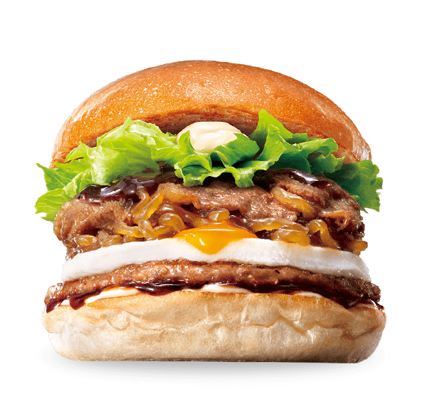 牛カルビ肉とすき焼きの定番食材しらたきを、焼津産鰹節の香りと利尻産昆布の旨みが特長の特製すき焼きソースと合わせ、ハンバーグパティやとろ~り半熟風たまご、レタス、マヨネーズなどとともにふんわりもっちり食感のバンズで挟んだ一品です。ひと口食べると、牛カルビ肉の濃厚な旨みや特製すき焼きソースの鰹節や昆布の風味、とろ~り半熟風たまごのまろやかさが重なり合う、本格的なすき焼きのような贅沢な味わいをお楽しみいただけます。