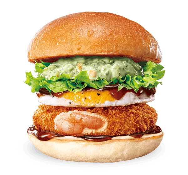 プリプリサクサク食感のえびパティに、店内で焼いたぷるぷる食感のたまごを合わせ、特製てりやきソース、大葉タルタルソース、シャキシャキ食感のレタス、マヨネーズなどとともにふっくらなめらかな食感のバンズで挟んだ商品です。