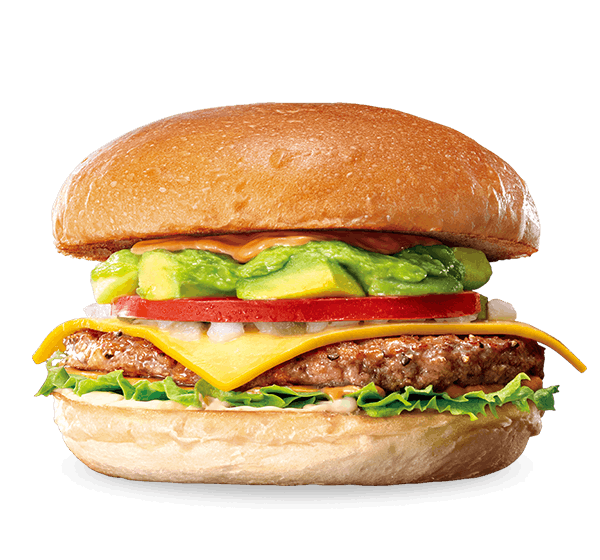 アボカドのクリーミーな味わいと、やさしい酸味のあるオーロラソース、濃厚なチーズのコクが織りなす贅沢な味わいをお楽しみいただけるバーガーです。